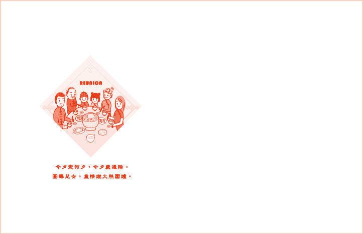 * 年夜飯團聚意象,象徵圓滿與豐收