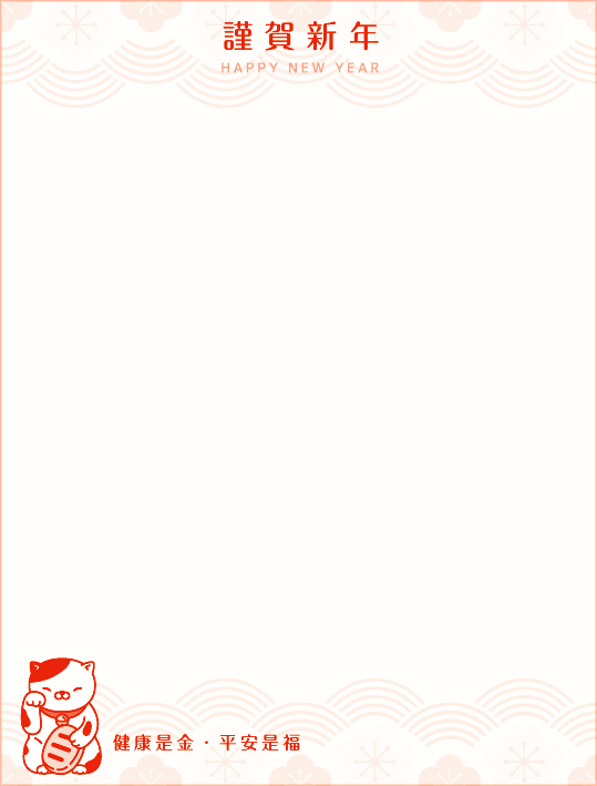 以日系可愛插畫風格結合節慶喜氣元素,展現新年的幸福氛圍。